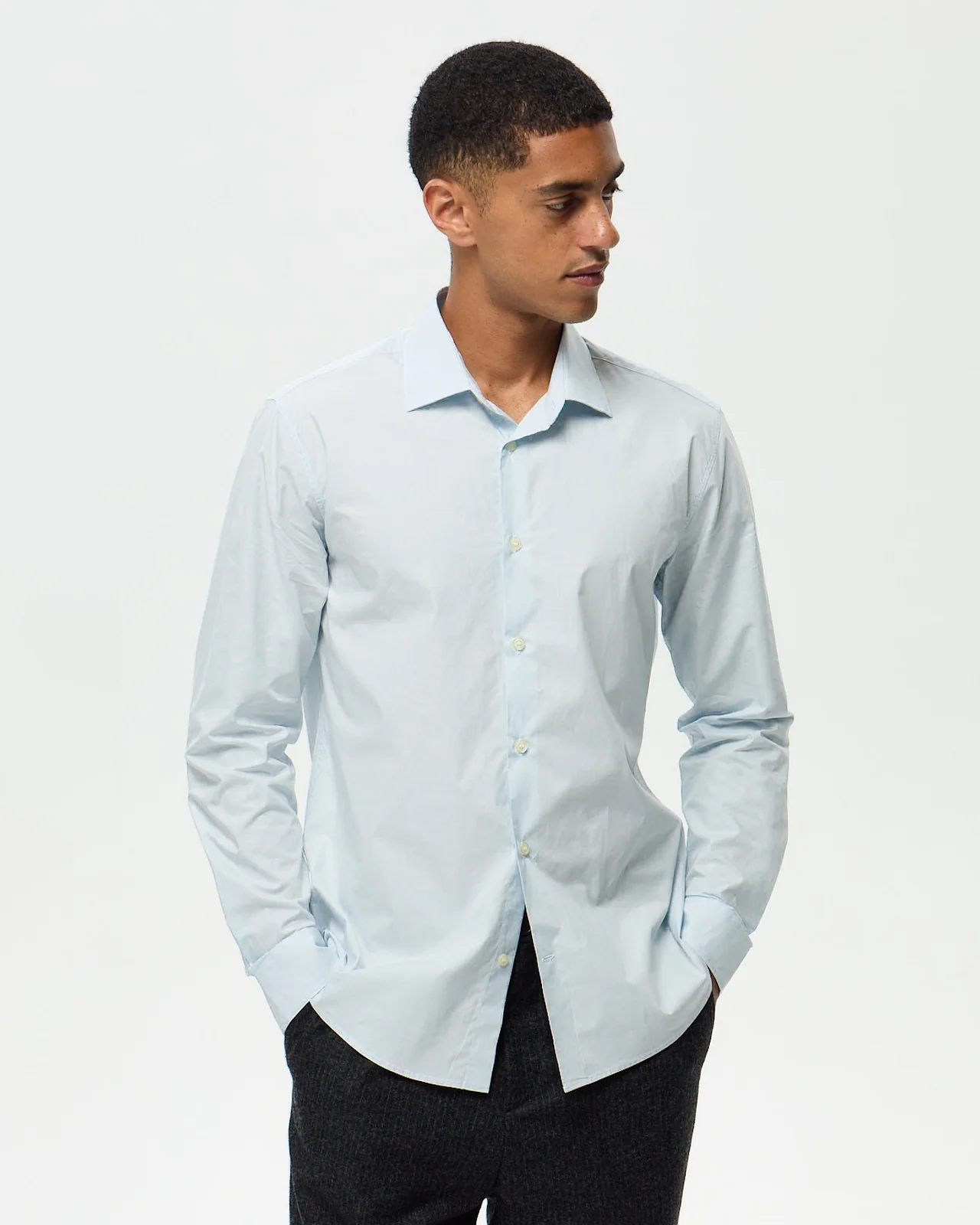 La chemise popeline dans sa version azur lumineuse. Sa coupe semi-ajustée valorise harmonieusement la silhouette, tandis que le col semi-italien apporte cette touche de sophistication méditerranéenne. Ce coloris intemporel traverse les saisons avec une fraîcheur constante, dans un tissu portugais tissé depuis 1932 qui incarne l’excellence textile. Fabrication marocaine.