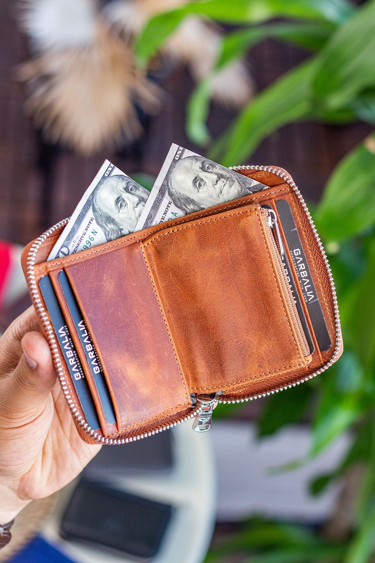portefeuille unisexe cuir véritable, portefeuille crazy leather, portefeuille taba, portefeuille zippé cuir, portefeuille avec porte-monnaie, portefeuille compact