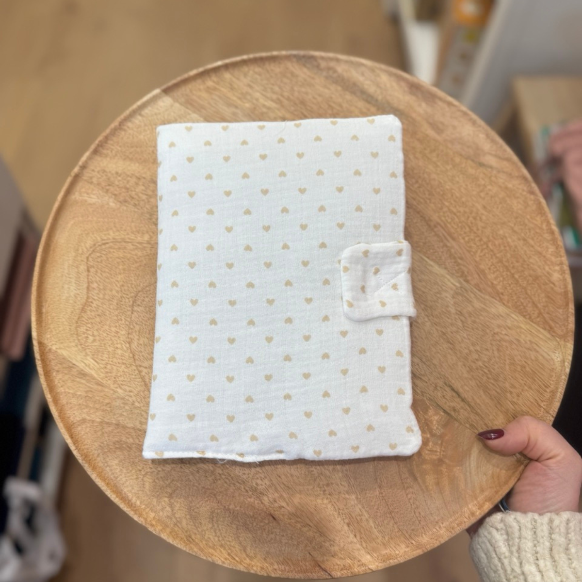 Le protège carnet de santé en gaze de coton est un accessoire à la fois pratique et délicat, pensé pour accompagner les premiers instants de vie de bébé. Avec ses dimensions de 16,5 x 22 cm, il est parfaitement adapté au format standard du carnet de santé et permet de le protéger durablement des pliures, des taches et de l’usure du temps.