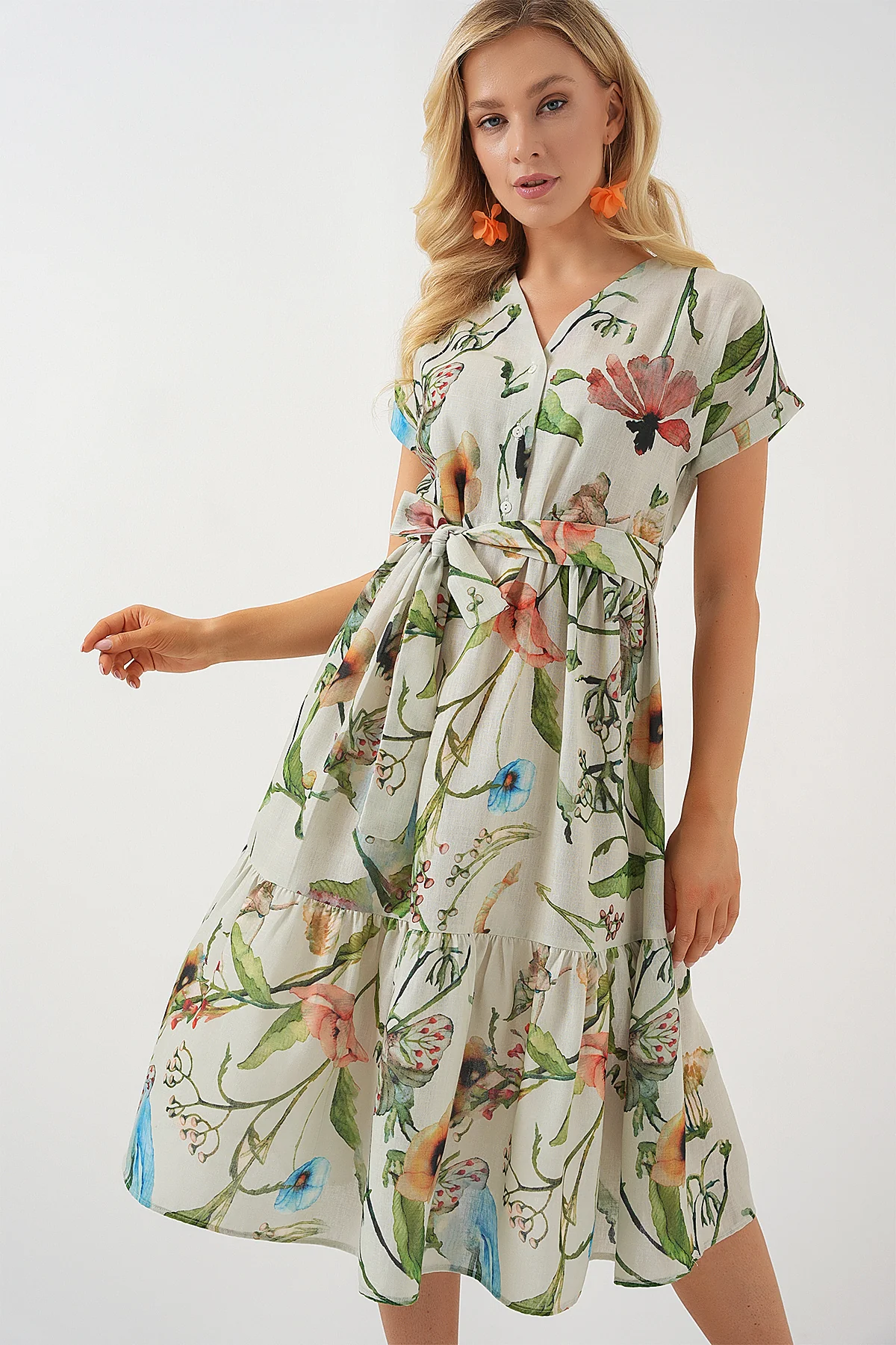 Robe femme à motifs manches courtes en viscose et lin 2558