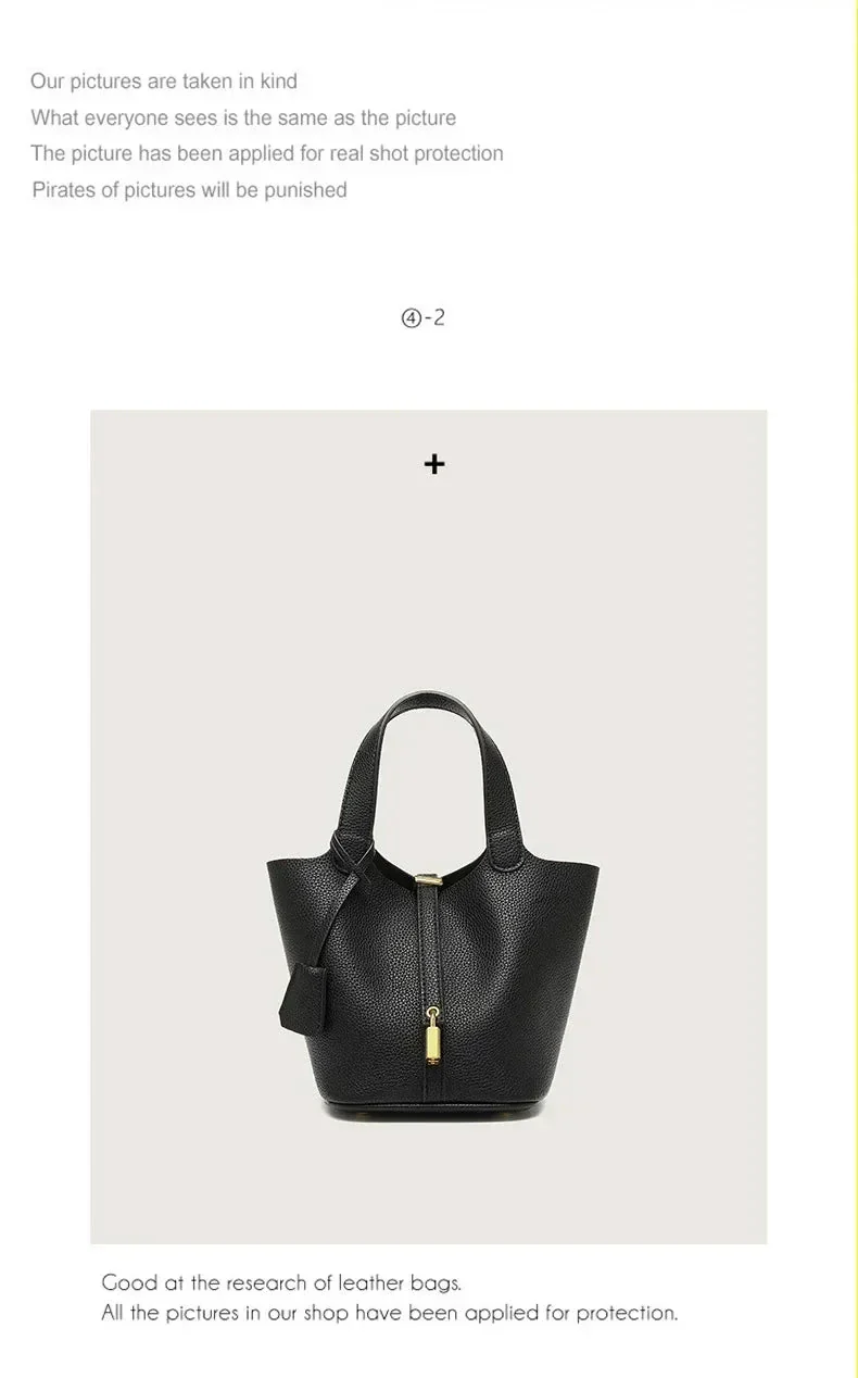 Sac à Main Femme en Forme de Seau – Sac Picotin avec Motif Lychee, Sac à Bandoulière Tendance