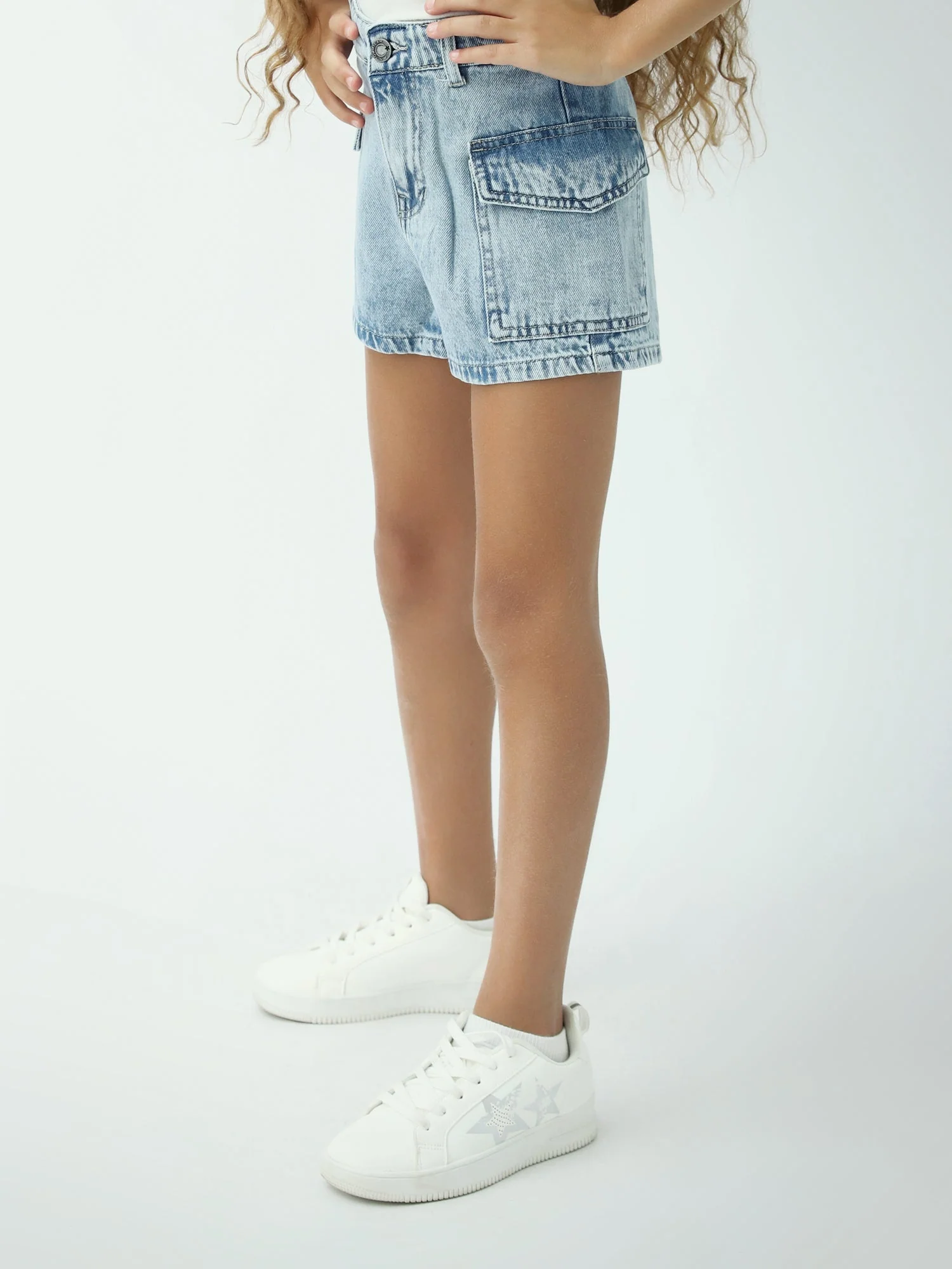 Short en jean fille bleu clair style cargo – poches à rabat – SHR24SDWC70578MG1