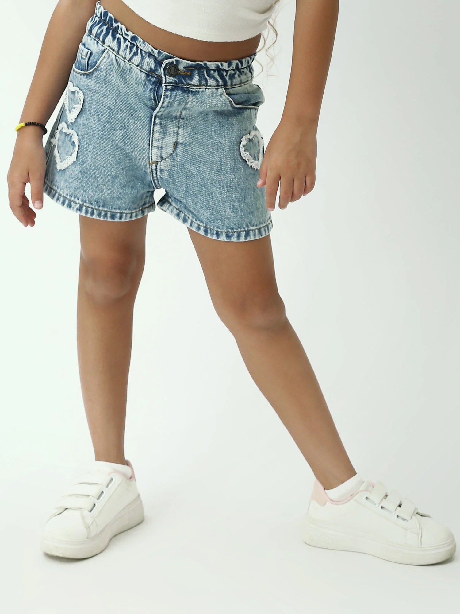 Short en jean fille ice blue avec imprimés fun – taille élastique – ourlets effilochés – SHR24SDPP70611MG1