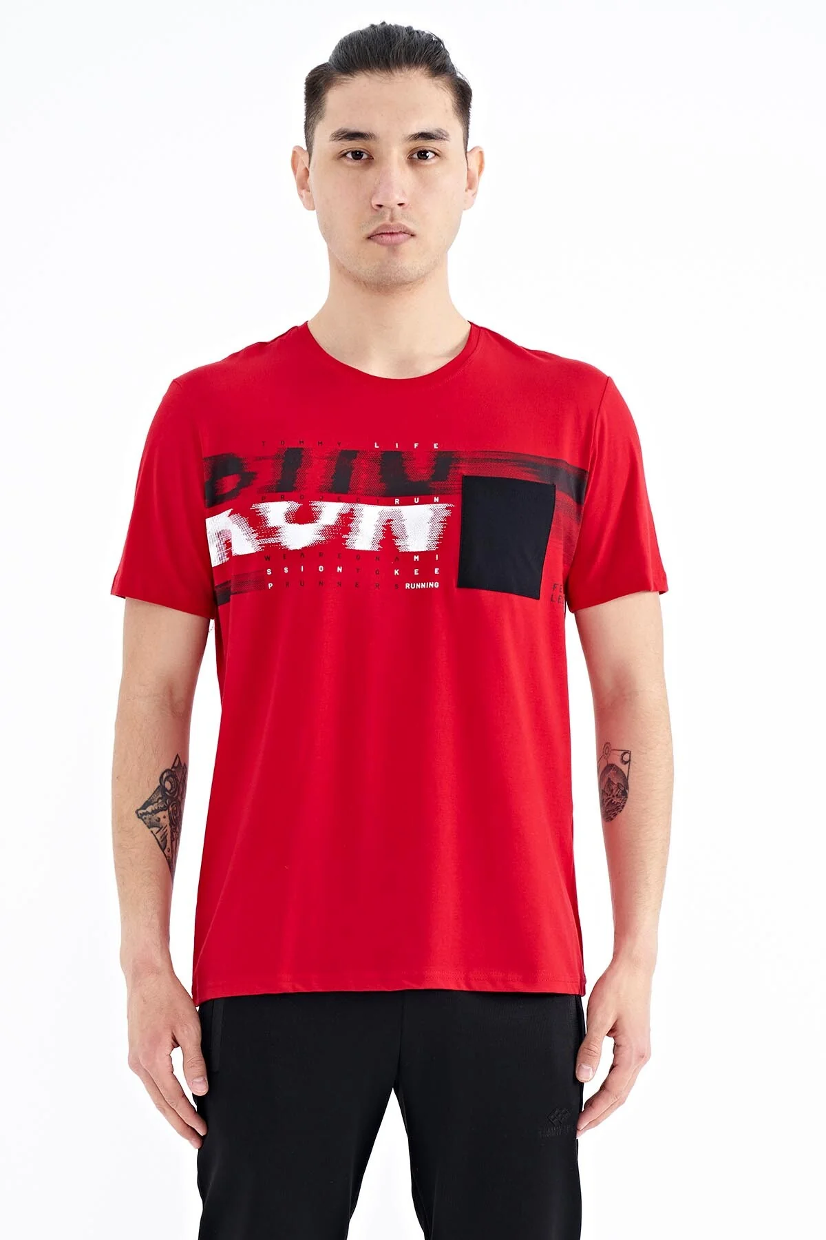 T-shirt pour homme à col rond avec détail imprimé sur la poche avant – 88200