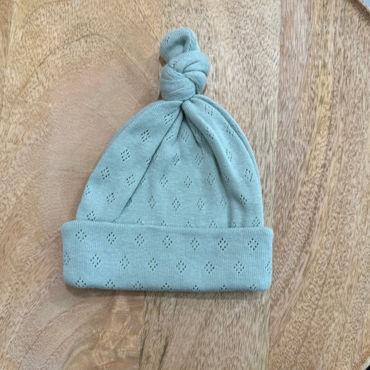 3KG7 – Bonnet de naissance en maille vert sauge