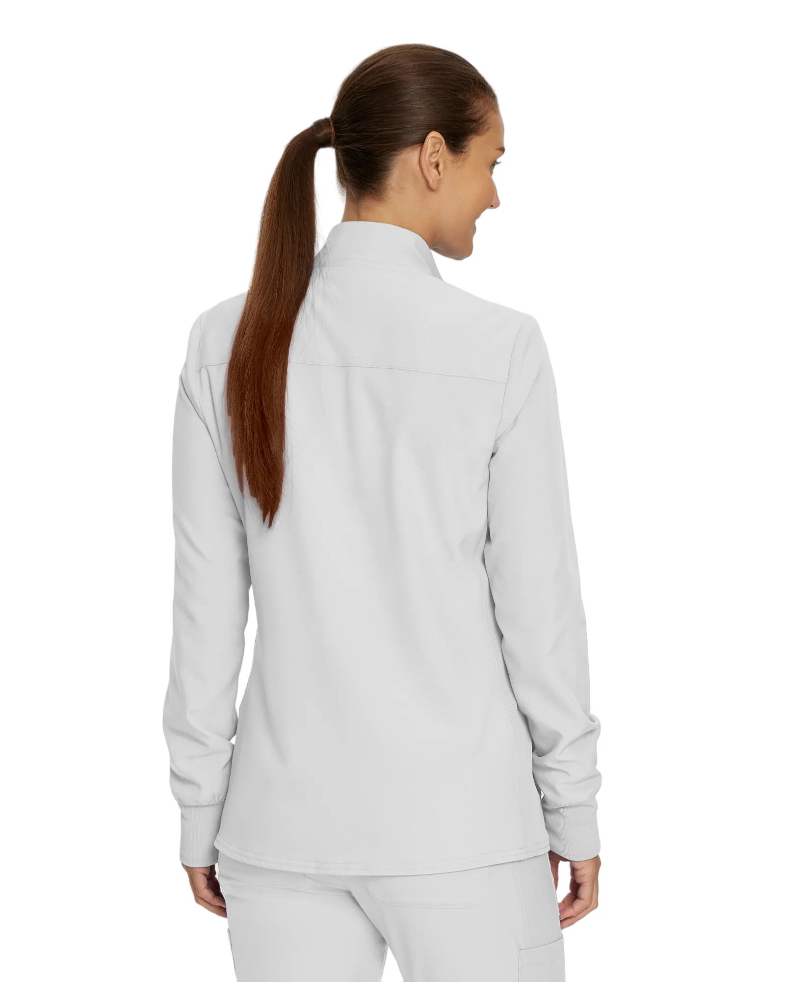 Cette veste sportive à fermeture à glissière est le vêtement d’extérieur idéal à superposer à votre haut de scrub. Elle est dotée de grandes poches fonctionnelles dans les coutures latérales et d’une poche de poitrine à fermeture à glissière pour ranger vos effets personnels essentiels. Notre coupe s’ajuste au corps tandis que notre tissu super extensible évacuant l’humidité offre le confort et la souplesse nécessaires à votre travail tout au long de la journée.