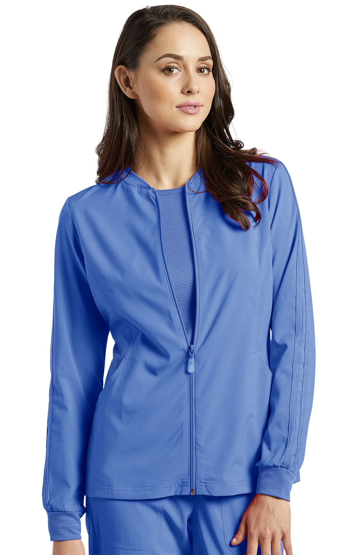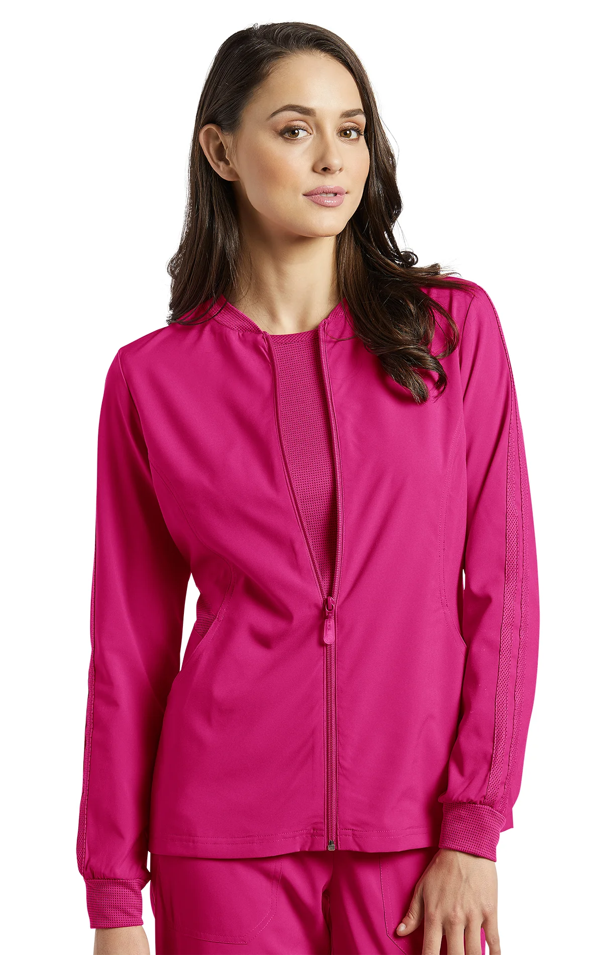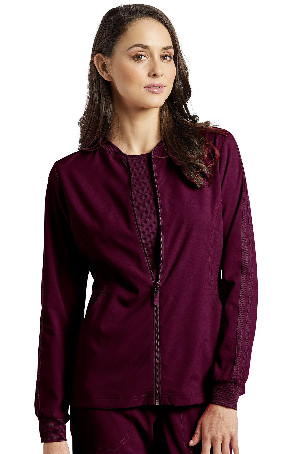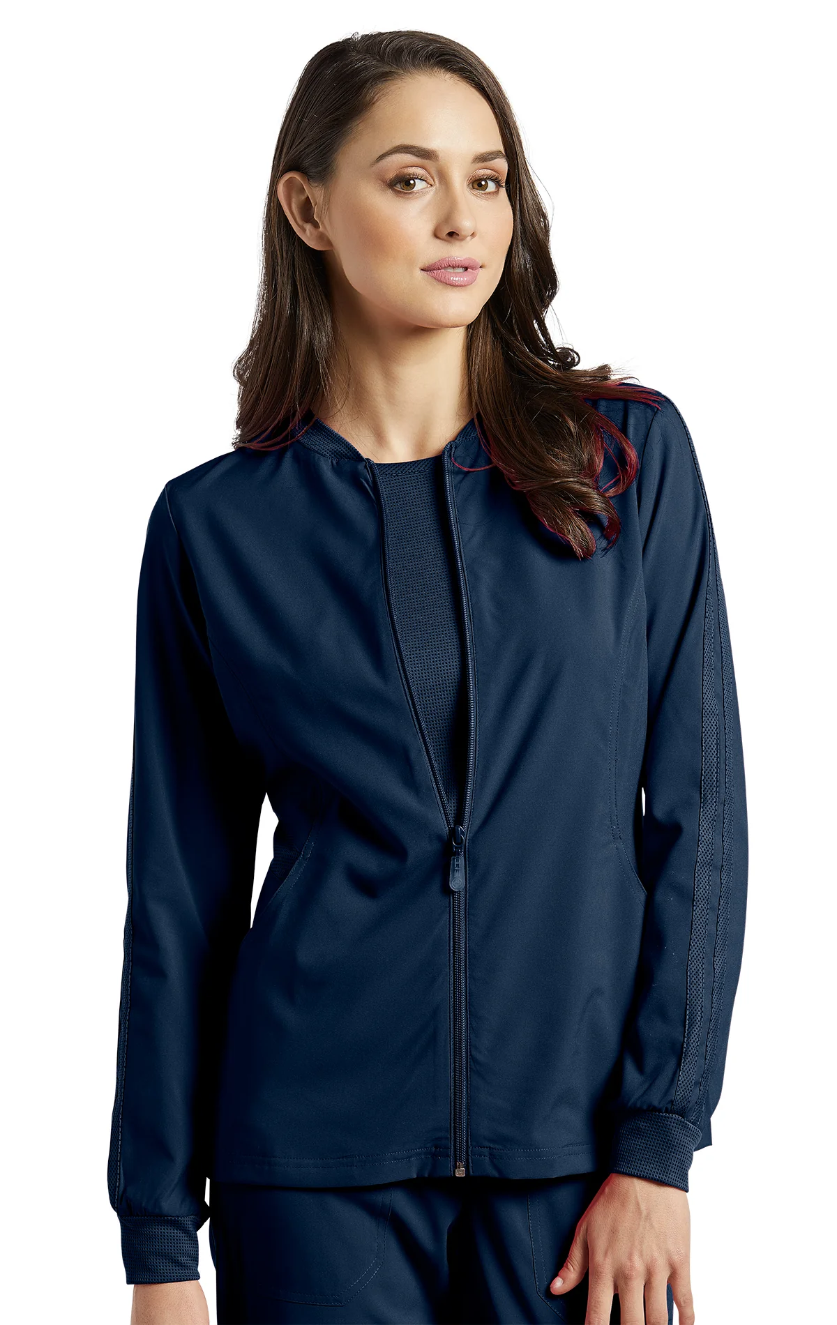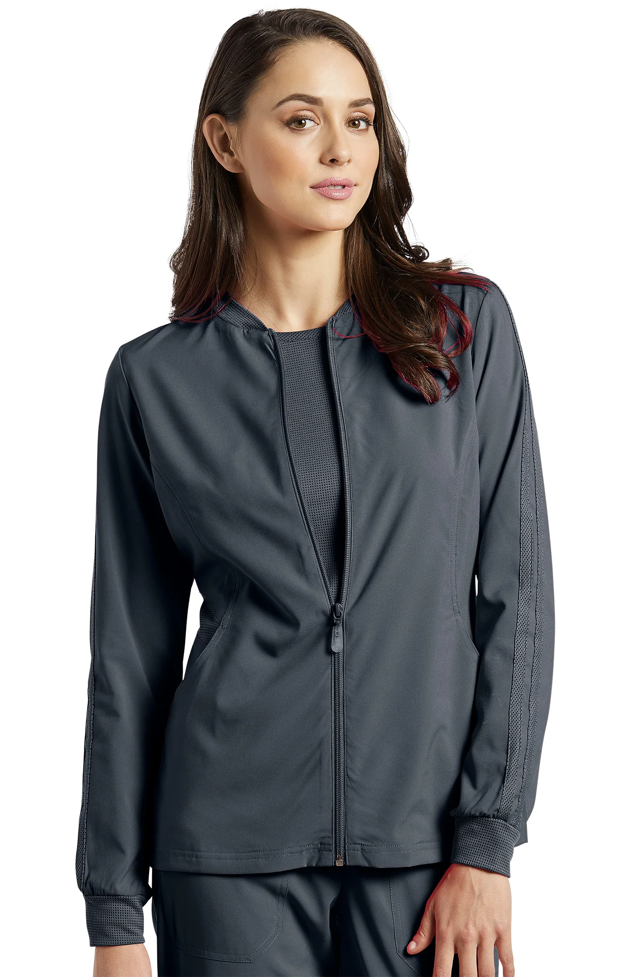 Veste dame FIT de style sportif vous gardera au chaud tout en restant élégante en même temps, deux poches, fermeture éclair, bande de tissu texturé le long de la manche.